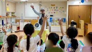すごく楽しいショーをありがとうございました。家のものでシャボン玉ができるかな?シリーズは年長クラスにかなり盛り上がっていました。私たち保育士もシャボン玉の中に入れて下さりありあいがとうございました。