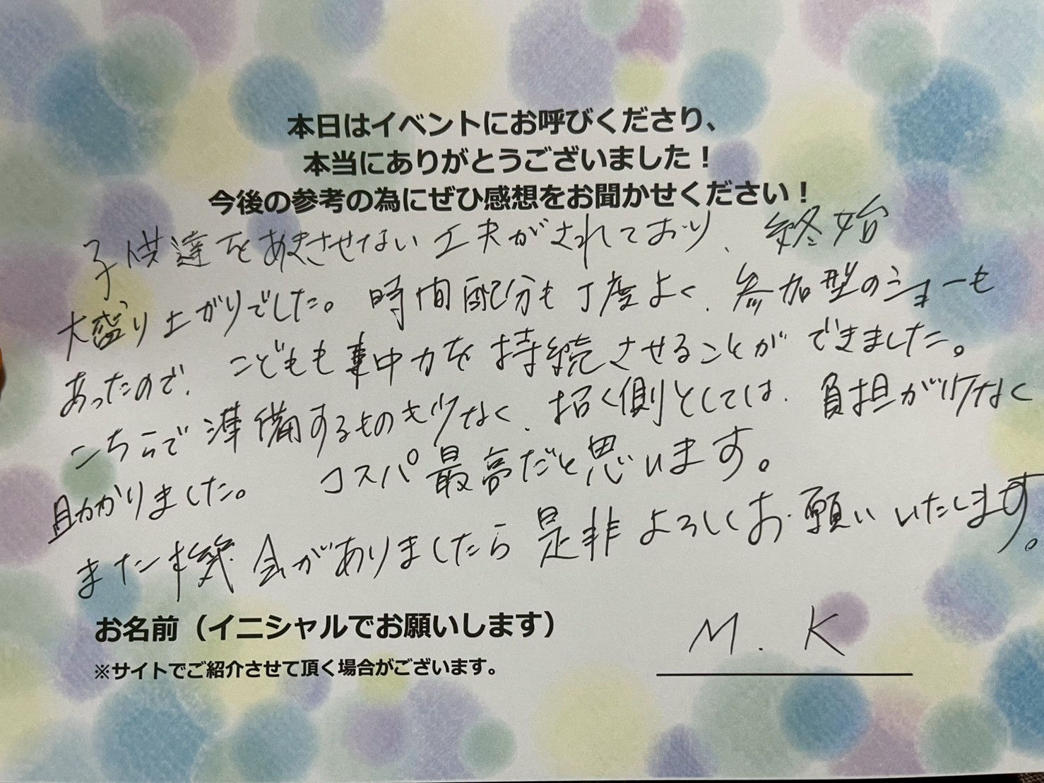 大盛り上がりでした。 時間配分も丁産よく、参加型のショーと