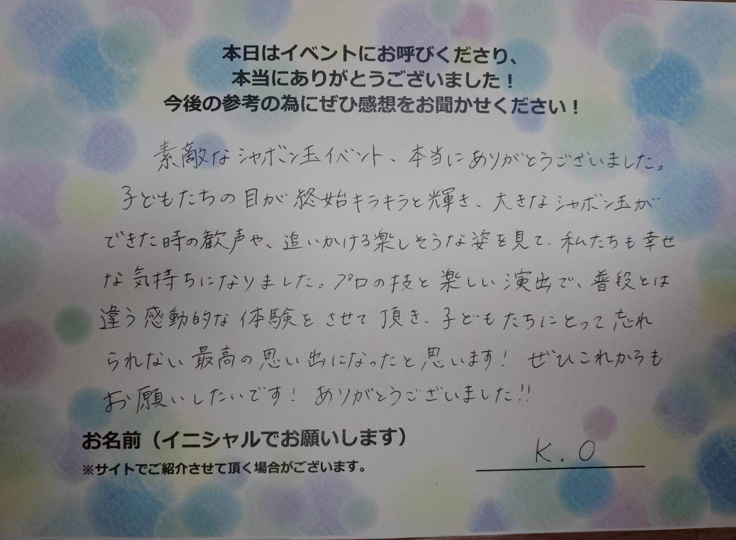 お客様の声素敵なシャボン玉イベント、本当にありがとうございました。