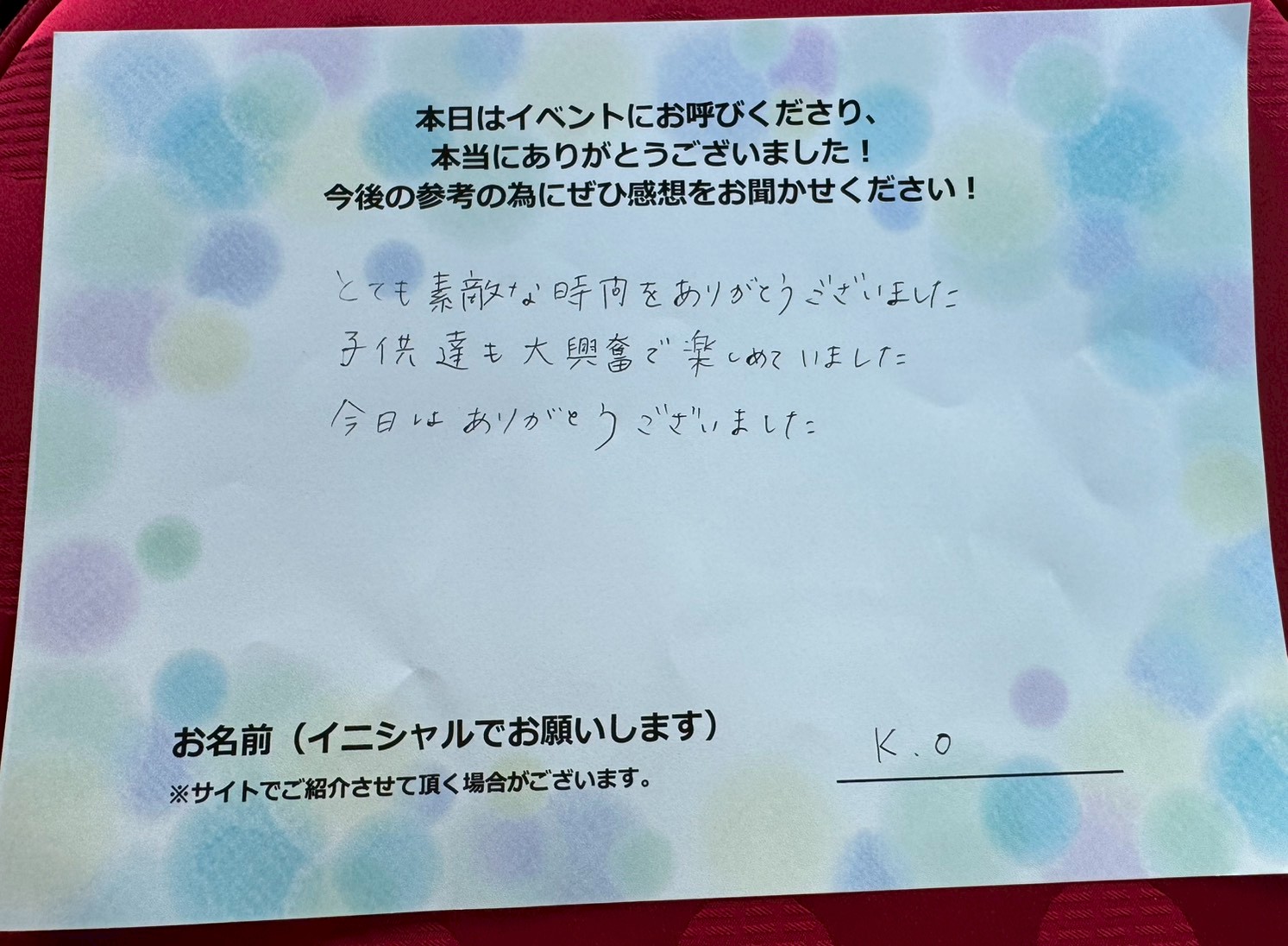 お客様の声とても素敵な時間をありがとうございました