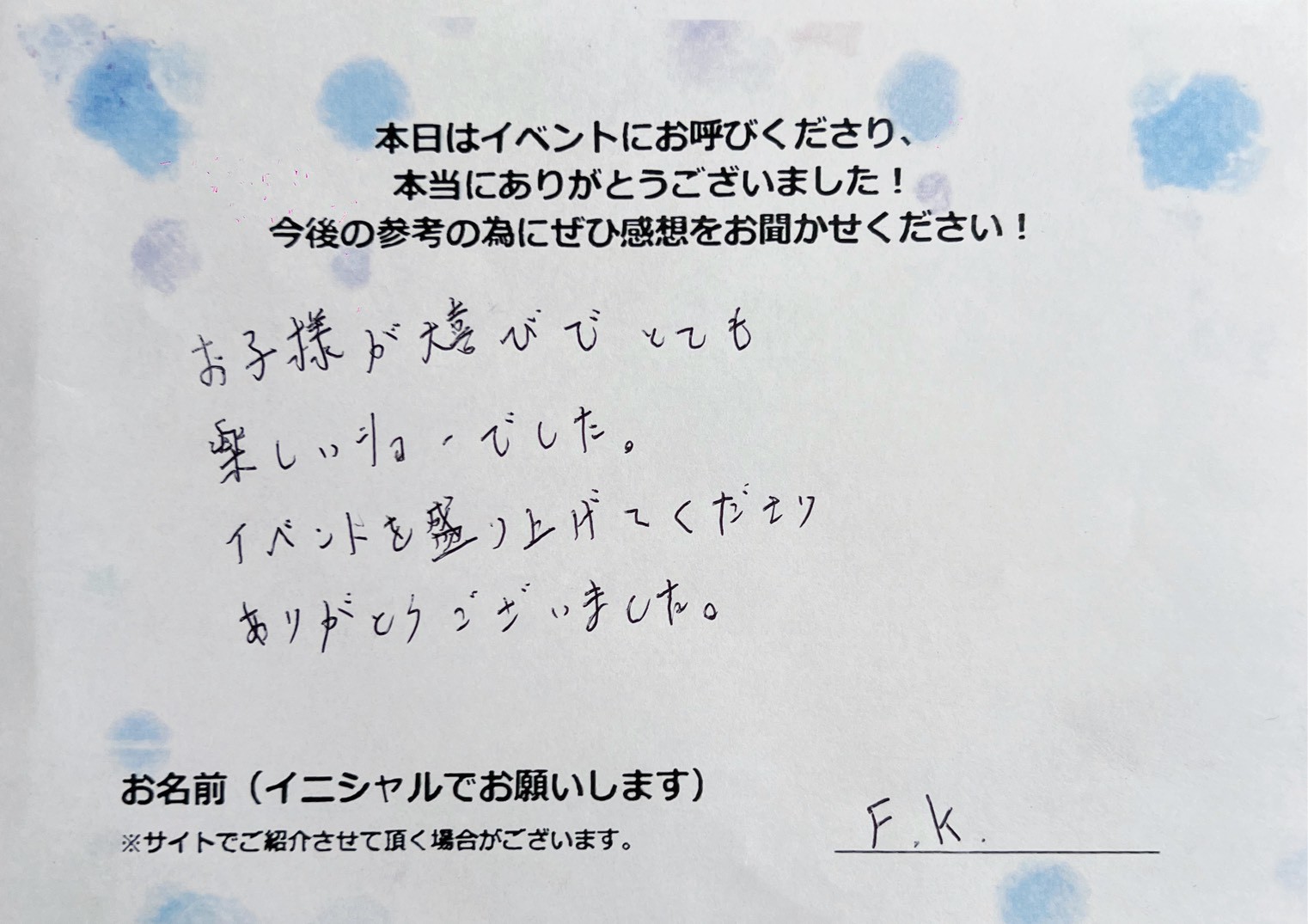 「バブリン先生のシャボン玉ショー」のご依頼・ご相談は、 以下のフォームよりお気軽にお問い合わせください。