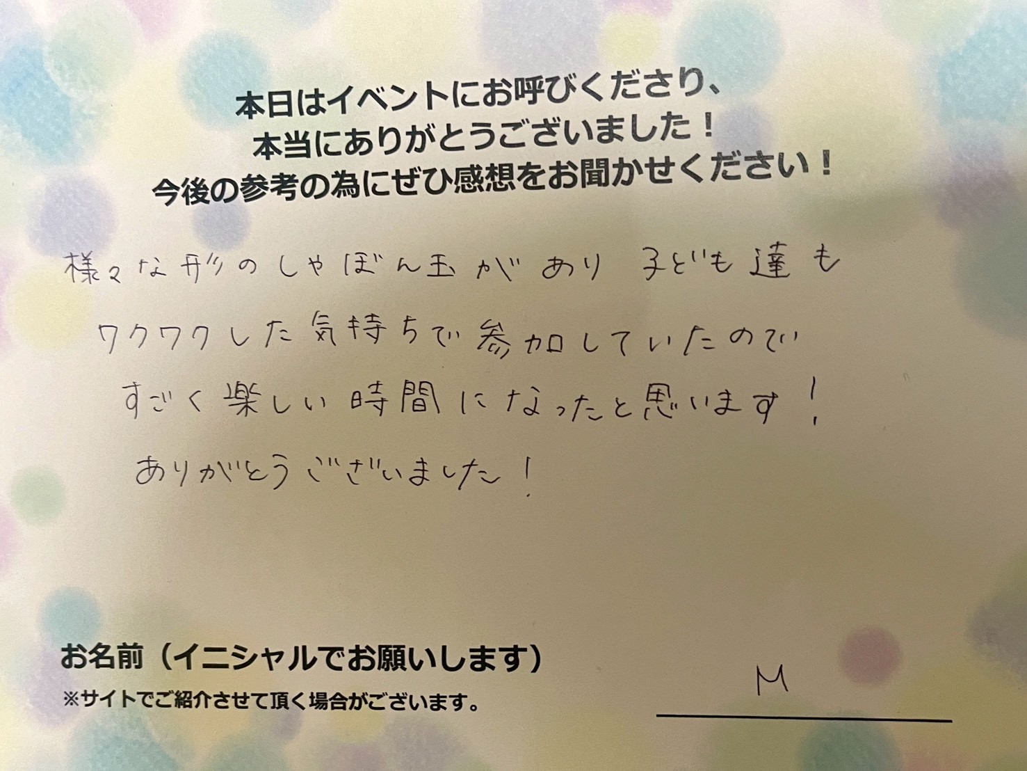 「バブリン先生のシャボン玉ショー」のご依頼・ご相談は、 以下のフォームよりお気軽にお問い合わせください。