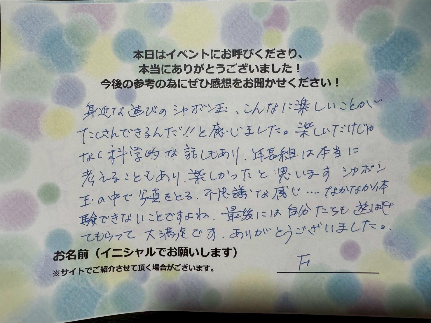 お客様の声身近は遊びのシャボン玉、こんなに楽しいことが