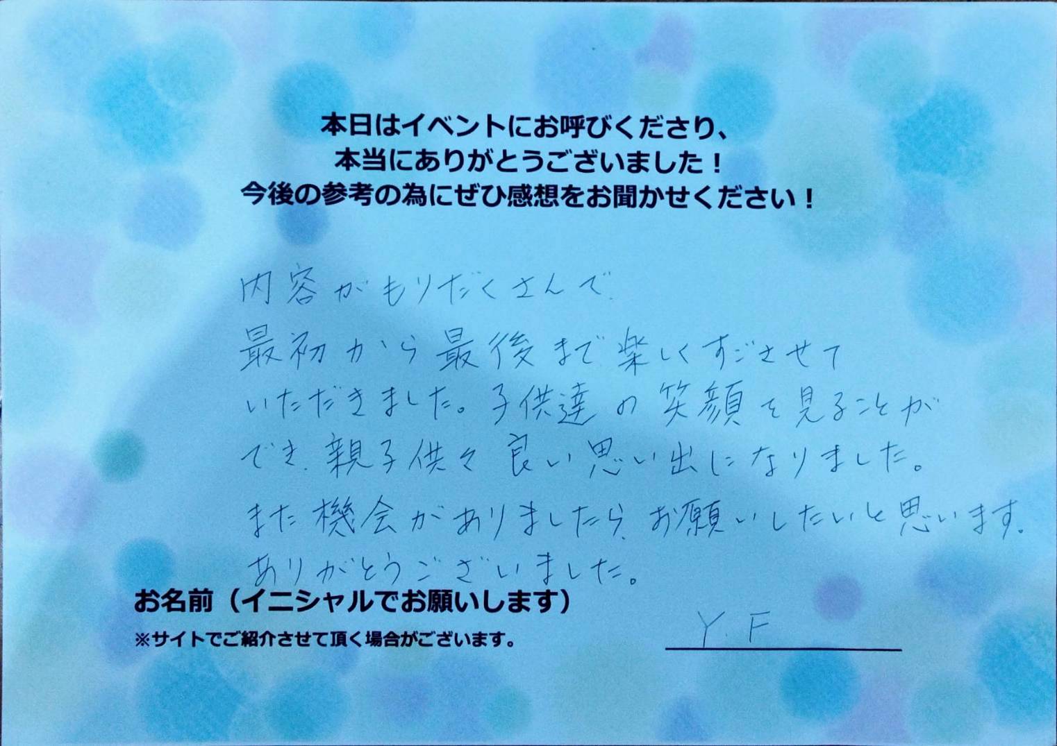 子供達の笑顔を見ることが でき.親子供々良い思い出になりました。
