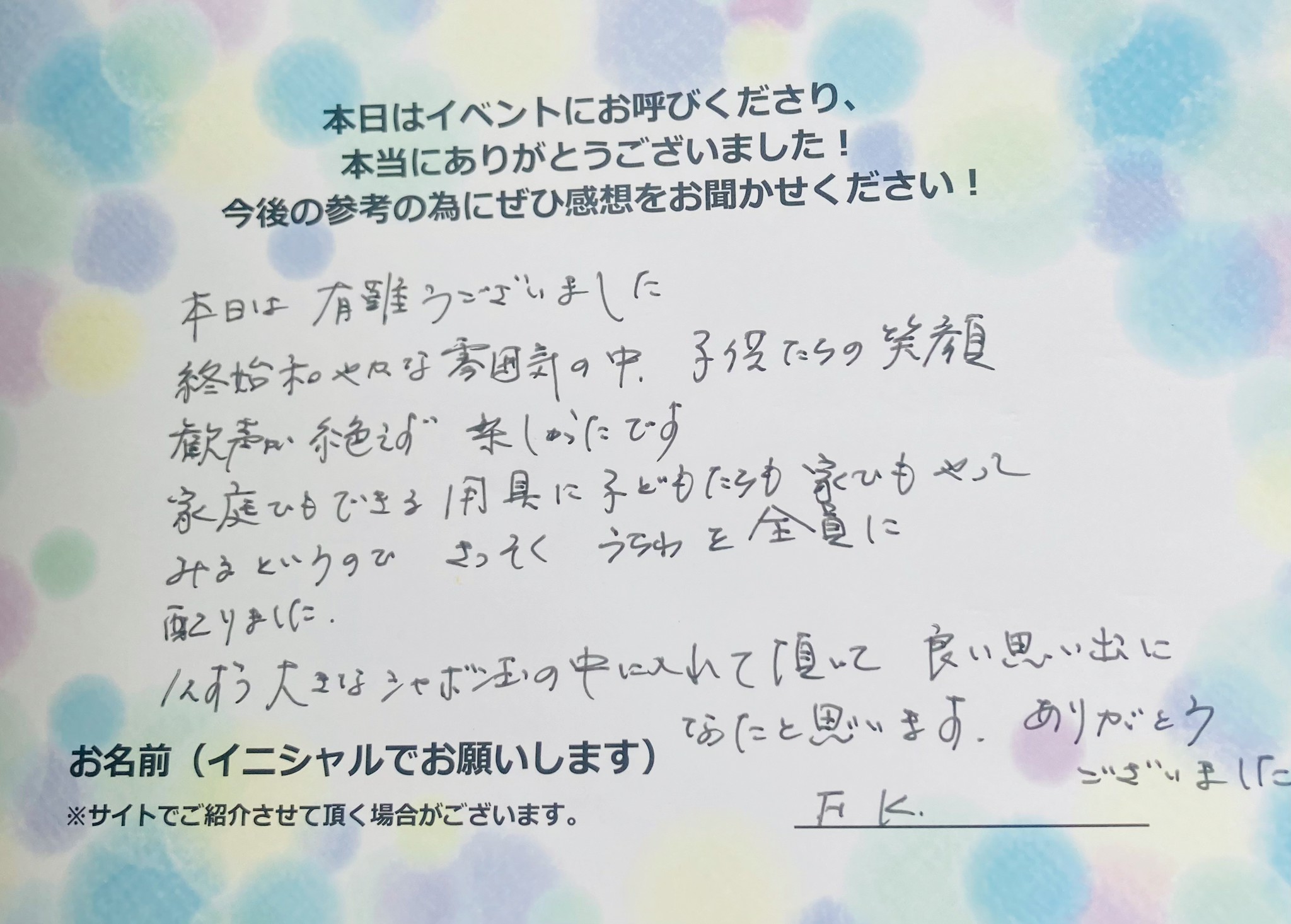 「バブリン先生のシャボン玉ショー」のご依頼・ご相談は、 以下のフォームよりお気軽にお問い合わせください。