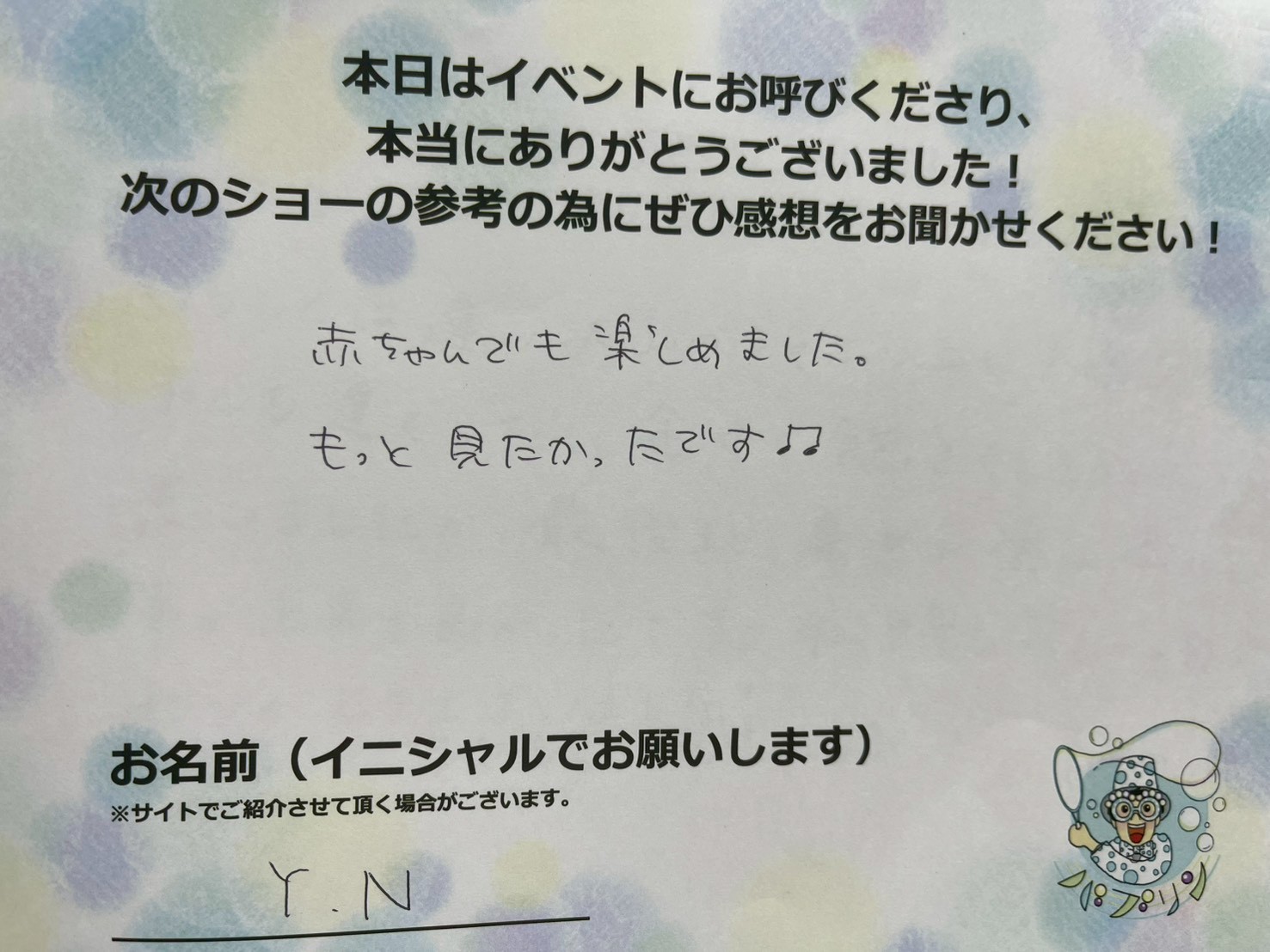 「バブリン先生のシャボン玉ショー」のご依頼・ご相談は、