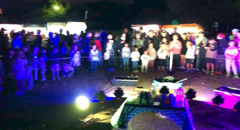 シャボン玉ショーが始まる直前には、どこからともなくたくさんの人が集まってくれて、大盛り上がりのナイトバブルショーでした!
