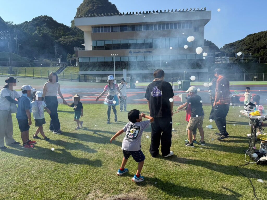 スタッフの方々のご協力もあり、大人も子供もシャボン玉作りを安全に楽しく体験することができたと思います。ありがとうございました。