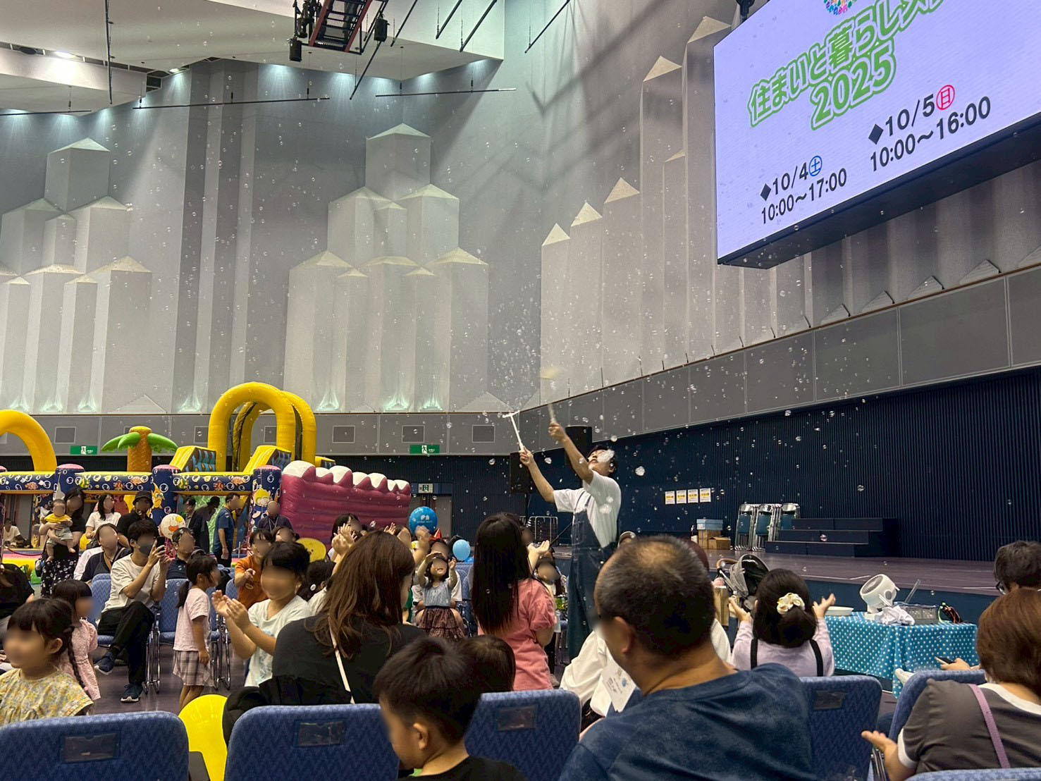 会場いっぱいに広がる色とりどりのシャボン玉に、子どもたちの歓声が響き渡りました。