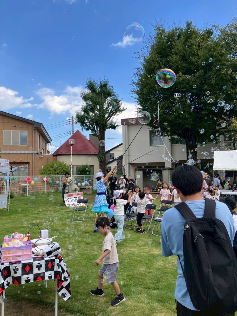 シャボン玉ショーの前に、サイエンスマジックショーでなべっちが大いに盛り上げてくれたあとのすぐの出番でやりやすかったです!2人で盛り上げられたと思います!